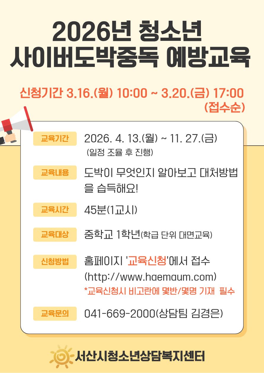 [Á¢¼öÁß]2026³â û¼Ò³â »çÀ̹öµµ¹ÚÁßµ¶ ¿¹¹æ±³À° ¾È³»(ÁßÇб³ 1Çгâ)
